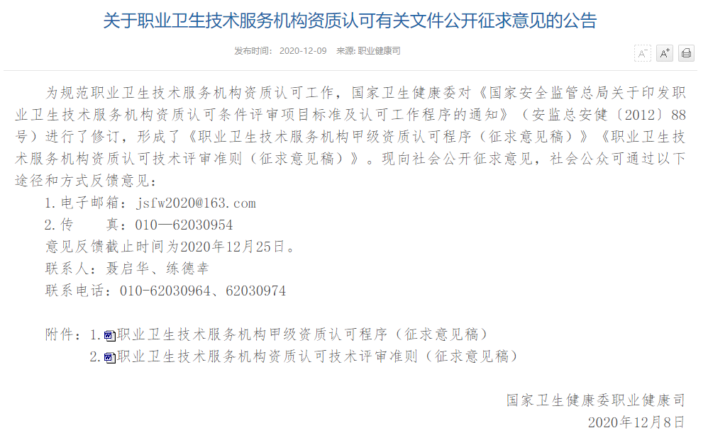 第十六條 業(yè)務(wù)司局對取得職業(yè)衛(wèi)生技術(shù)服務(wù)機構(gòu)甲級資質(zhì)的單位在國家衛(wèi)生健康委政府網(wǎng)站上進行公告。
